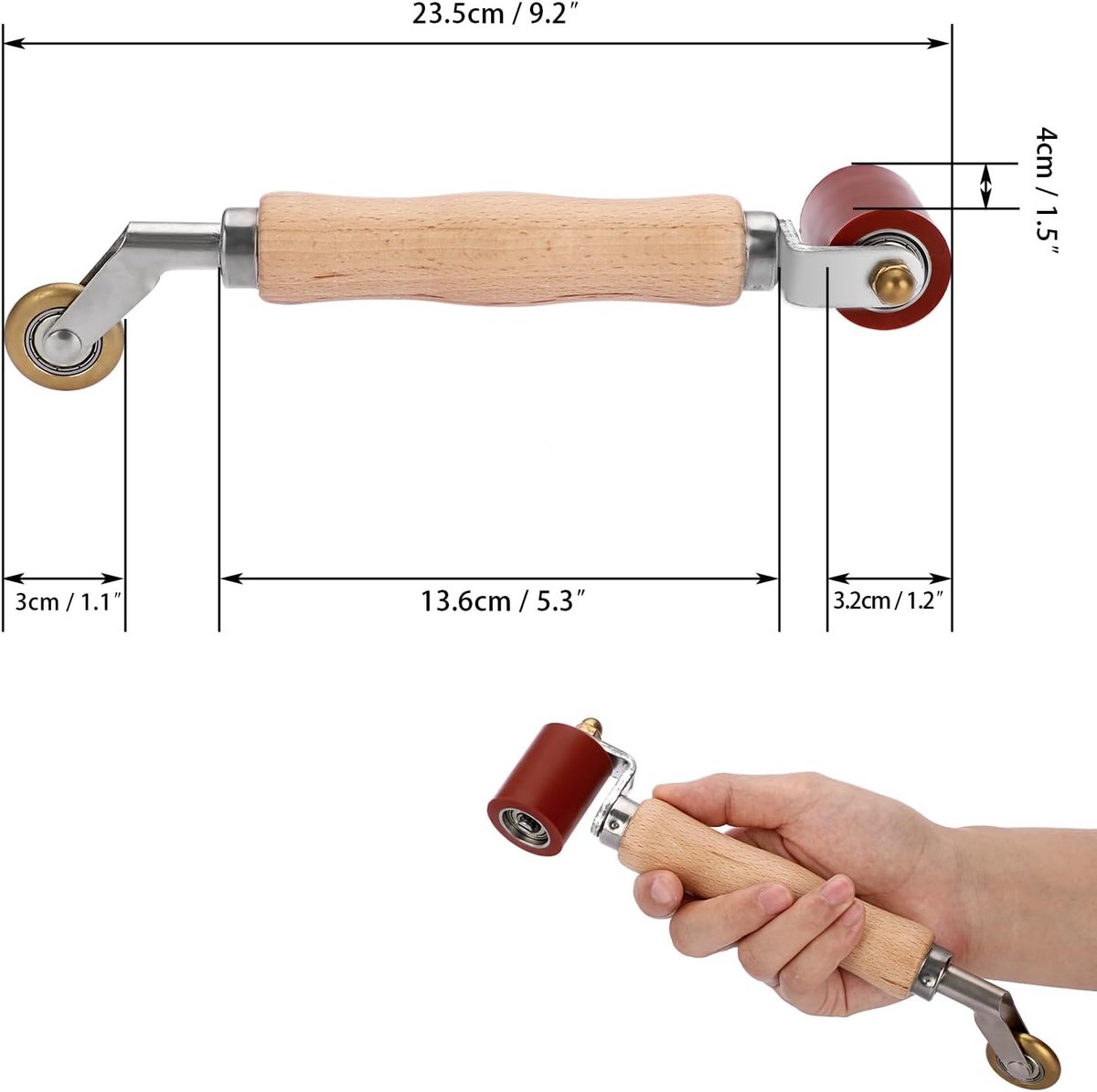 Het onbehandelde houten handvat voorkomt blaren doordat het transpiratievocht opneemt, waardoor langdurig gebruik comfortabel blijft. Met deze compacte en duurzame roller van 23,5 cm heb je twee gereedschappen in één, wat tijd en geld bespaart.