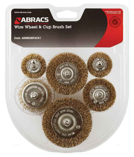 De Abracs 6-delige set met op spindel gemonteerde borstels voor verschillende toepassingen.