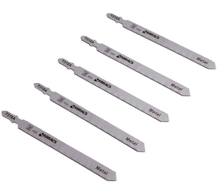 De Abracs ABT318A en ABT318B zijn beide een set van 5 decoupeerzaagbladen voor metaal, van professionele kwaliteit. Perfect voor het zagen van dun plaatmetaal en aluminium buizen. De golvend ingestelde tanden zijn ideaal voor fijne, rechte zaagsneden. Deze bladen zijn zeer veelzijdig en geschikt voor gebruik met veel verschillende merken machines (zie lijst hieronder).
