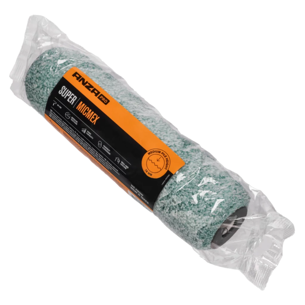 Anza Micmex Microvezel muurverfrol is geschikt voor een medium ondergrond en geeft een zeer fijne structuur. De Anza Micmex roller is Anti-spat en heeft een zeer hoge verfopname. Anza Micmex -Microvezel Roller is geschikt voor alle soorten muurverf.