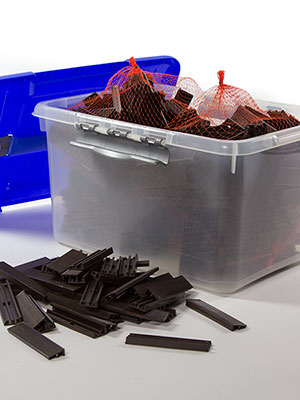 De Combibox is een afsluitbare kunststof box met daarin verschillende maten keggen. Deze blokjes van polypropyleen zijn slagvast, zelfs bij lage temperaturen. Combibox Keg bestaat uit 200 blokjes 22x 8/4mm en 200 blokjes 24x 8/4mm. Totaal 400 stuks in een box.