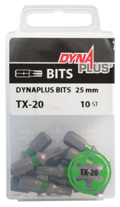 De Dyna bits zijn, net als de Dynaplus® schroeven, van professionele kwaliteit. Ze zijn gemaakt van S2 gelegeerd gereedschapsstaal en zijn licht conisch gevormd voor een stabiele bit-fit en meer grip tijdens het inschroeven. De bitjes zijn verpakt in een handige afsluitbare bewaarblister.