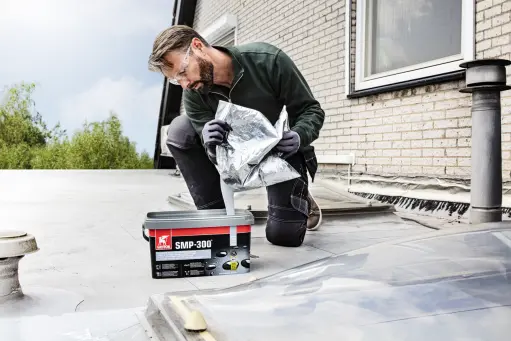 - Points to note: The coating is resistant to light rain after 30 minutes and to heavy rain after 50-60 minutes. Fully waterproof after 12 hours, depending on relative humidity, temperature, and substrate. Be aware of longer curing times at lower temperatures and less humid weather conditions. It can be applied to bitumen treated with slate. Do not use the coating on untreated or rough bitumen roofs as it may discolor or detach over time. Always ensure the required minimum layer thickness to provide lasting mechanical resistance. If using a joint sealant in combination with SMP-300® coating, we strongly recommend using a neutral silicone or SMP sealant, such as Griffon S-200 or Poly Max® Fix & Seal, to prevent discoloration of the sealant. Not suitable for PE, PP, PTFE, and untreated Bitumen.