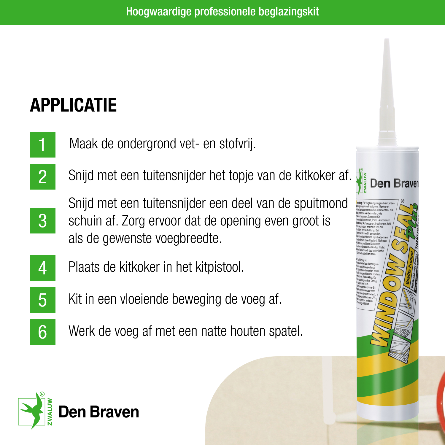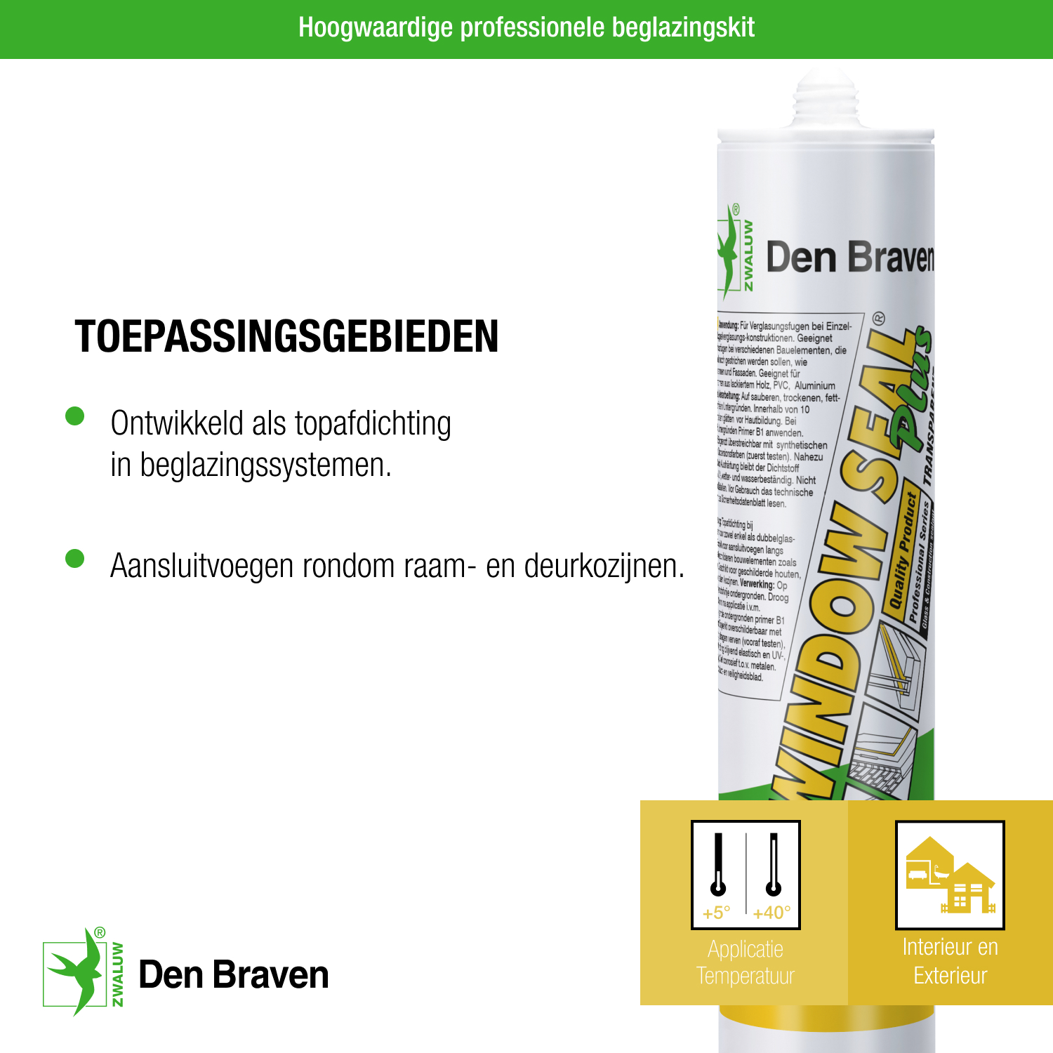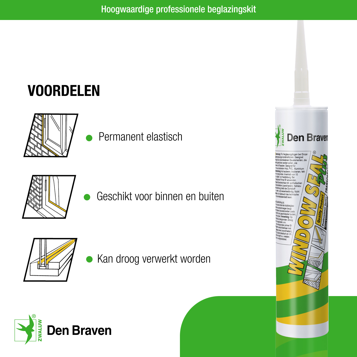 Zwaluw Window Seal Plus is a durable universal glazing sealant based on silicone. This neutral silicone sealant for glazing and facade joints is limited in paintability, but it is easy to apply (can be dry smoothed).