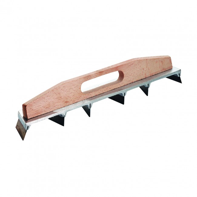 De Gipsschaaf is een aluminium gipsschaaf met 6 messen en is voorzien van een houten handgreep.