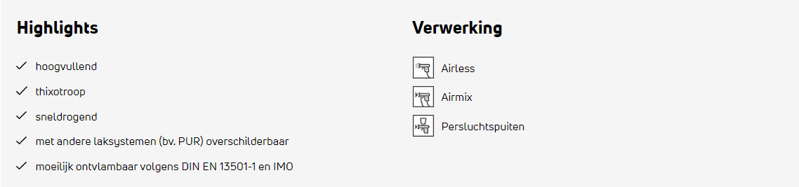 De 1K isoleervuller is thixotroop ingesteld en hoogvullend. De vuller is dus ideaal als vulgrond voor een geslotenporige lakopbouw en heeft een goede stand op verticale panelen.