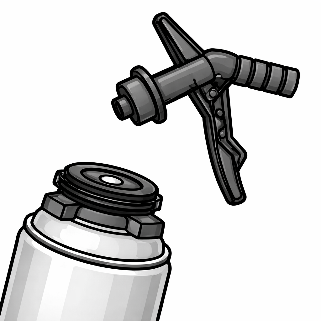 AA210 Spray Nozzle is speciaal ontwikkeld om op het gepatenteerde 2-in-1 systeem aan te brengen. Door het 2-in-1 systeem is het nu mogelijk om op elke pur- of lijmschuim bus zowel een schuimpistool als de AA210 Spray Nozzle te monteren.