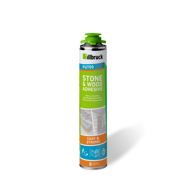 De PU700 STONE & WOOD ADHESIVE is een snel uithardende 1K polyurethaan lijm voor de verlijming van verschillende steenachtige en houten ondergronden. De PU700 is vrij van CFK-, HCFK- en HFK.