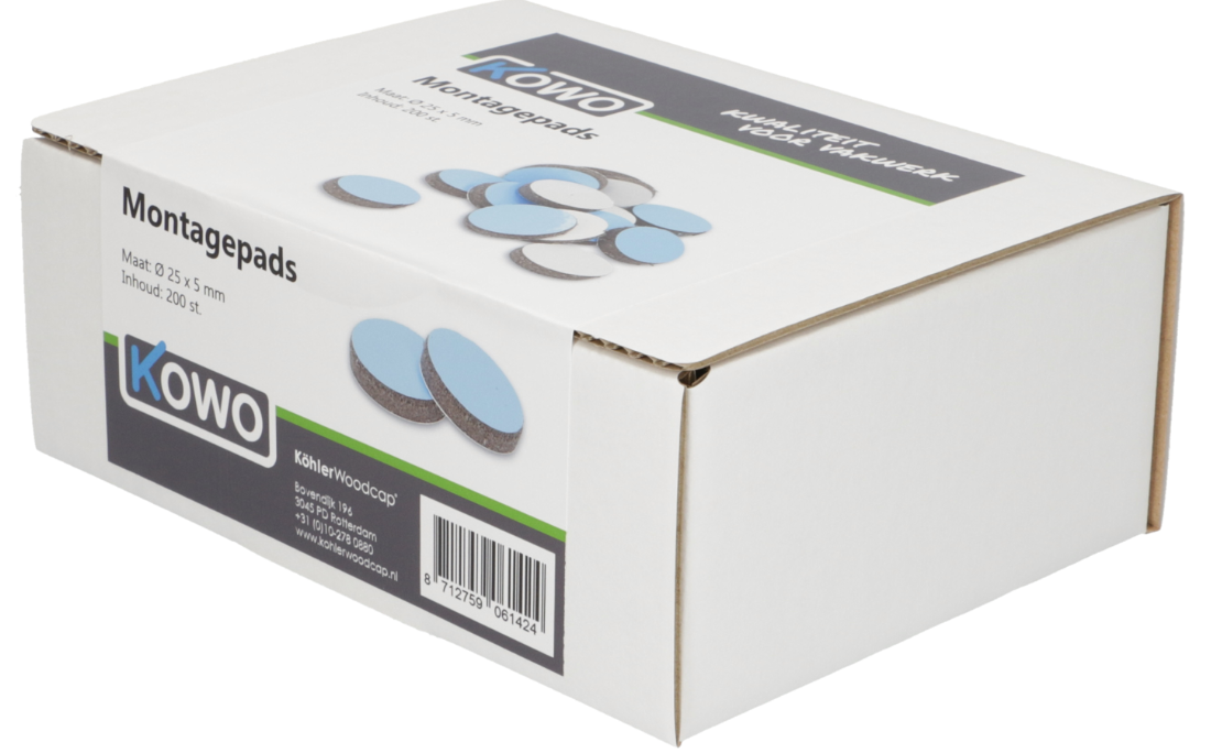 Kowo montagepads zijn handige dubbelzijdig klevende pads voor het makkelijk monteren van neuslatten op de onderdorpel. De montagepads hebben een zeer hoge densiteit en zijn aan beide kanten voorzien van een zeer sterk hechtende acryl kleeflaag.