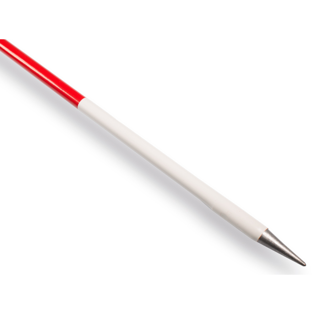 Jalonstok 200cm. Bovenkant wit. Voorzien van een sterke PVC ommanteling. Gemaakt van geselecteerd hout 28mm en voorzien van een ronde stalen punt. Merk NESTLE, made in Germany.