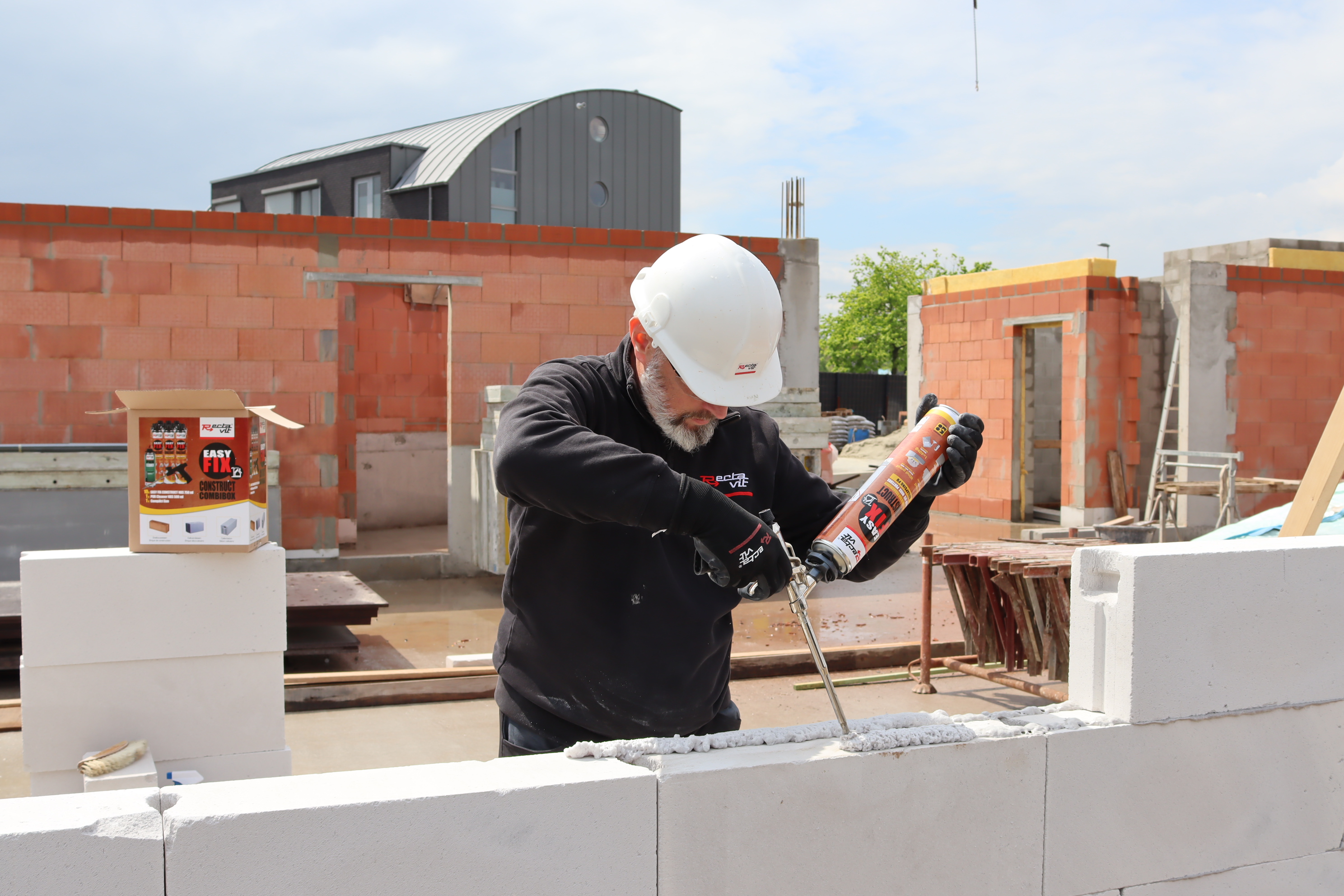 Rectavit Easy Fix Construct kan toegepast worden met vlakgeslepen lijmstenen uit keramische snelbouw- (holle bouwsteen), silicaat-, cellenbeton- en beton. Voor het stapelen van vlak geslepen lijmstenen voor dragende constructies bij residientiële bouw van één- of meergezinswoning tot een maximum hoogte van 4 bouwlagen.