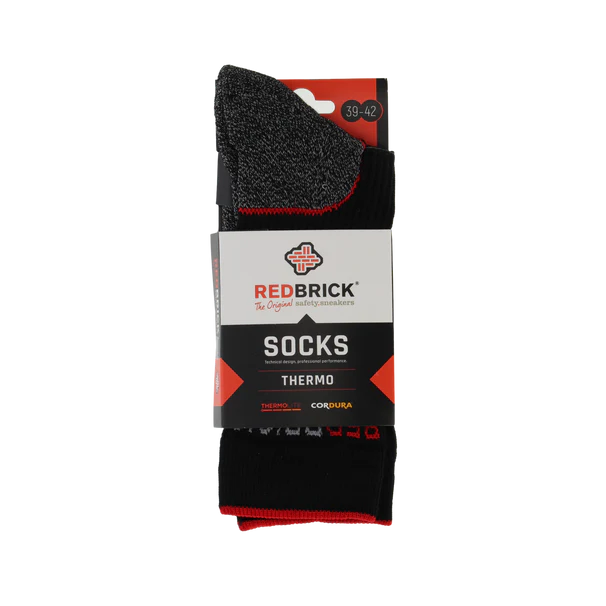 Met de Redbrick Thermo Sokken behoren koude tenen tot het verleden, zelfs op de koudste werkdagen. Dankzij hun warmte-isolerende eigenschappen blijven je voeten aangenaam warm en droog. Deze sokken zijn technisch ontworpen en versterkt met duurzaam Cordura®-materiaal.