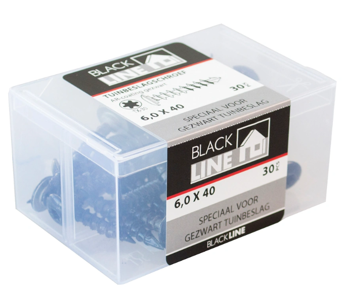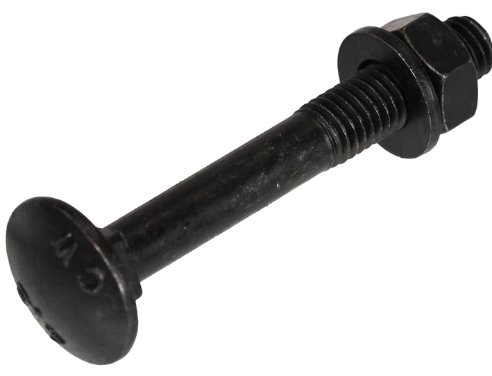 Gezwarte slotbouten DIN603 met de bijpassende sluitringen DIN125-A en zeskantmoeren DIN934 voor de montage van gezwarte hengen.