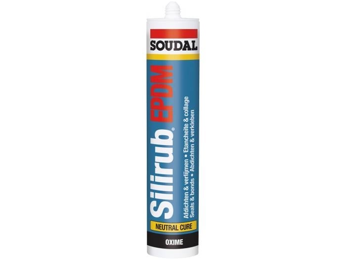 De Soudal Silirub EPDM is een neutrale, elastische één-component voegkit op basis van siliconen, voor afdichting va EPDM-toepassingen.De silirub heeft een zeer goede hechting op vele materialen en is kleurvast en UV-stabiel.