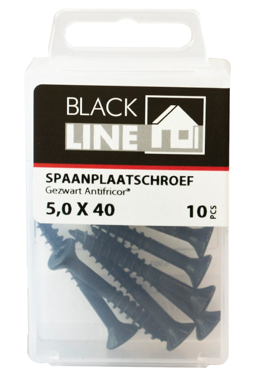 De gezwarte Blackline spaanplaatschroeven zijn van professionele kwaliteit: extra sterk én tevens flexibel. De cilinderkop heeft een recht gedeelte onder de kop en is hierdoor zeer geschikt voor metaal-op-hout verbindingen.