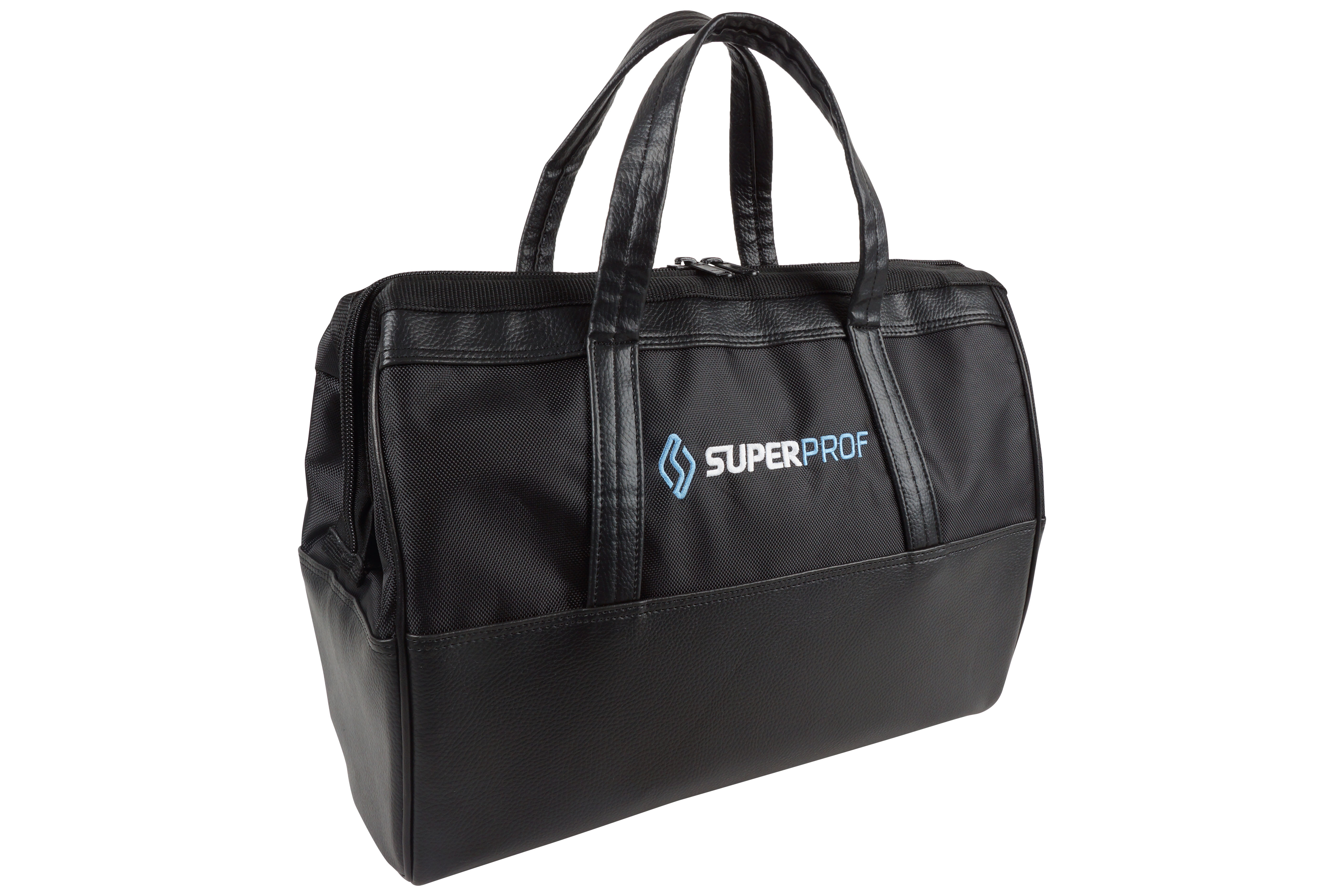 Ergonomische handgrepen: De Super Prof gereedschapstas is voorzien van 2 gevoerde handvatten met een ruime afmeting. Hierdoor blijft de tas bij verschillende handformaten fijn in de hand liggen, zelfs bij een zware bepakking.