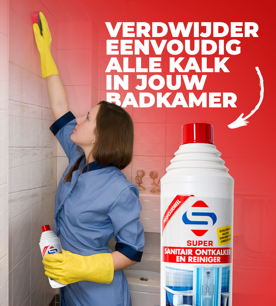 De Super Ontkalker en Reiniger is 100% de krachtigste ontkalker en reiniger voor je sanitair. De combinatie van de actieve grondstoffen en de gel, zorgen ervoor dat je binnen enkele seconden afrekent met hardnekkige kalk, verkleuringen, vieze voegen en douchewanden en kranen met kalk. Dit product moet je gewoon een keer testen en je bent verkocht!