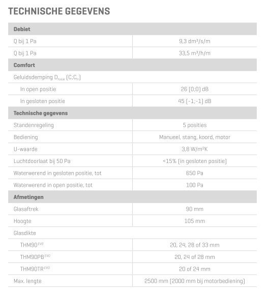 Dankzij zijn zelfregelende klep staat de THM-90 borg voor maximale toevoer van verse en gezonde lucht zonder enige tocht.