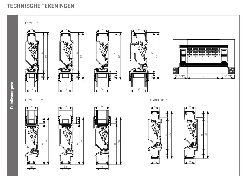 Het vlakke design van de THM-90 maakt dit product ideaal voor integratie in schuiframen (de THM-90 is niet geschikt voor integratie in hoogbouw)