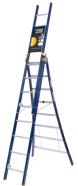 Wienese Supreme Reformladder 3 delig, is een een ladder met vele gebruiksmogelijkheden. Deze ladder is zeer geschikt voor uiteenlopende doeleinden. Deze ladder kan namelijk zowel vrijstaand als opgestoken gebruikt worden. Om wegglijden in de A-stand te voorkomen zijn alle Supreme Reformladders standaard voorzien van een drukvaste spreidbeveiliging. Tevens hebben zij een uitschuifbegrenzing en de verplichte borging op de opzethaak.