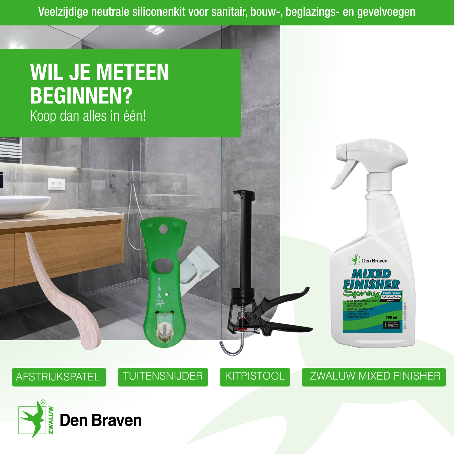 Zwaluw Silicone NO is een neutrale siliconenkit voor sanitair-, beglazings-, bouw- en gevelvoegen. Veelzijdige siliconenkit speciaal ontwikkeld voor duurzaam elastisch afdichten. Zwaluw Silicone NO is ook speciaal ontwikkeld voor badkamers en douches. Deze siliconenkit is zeer goed bestand tegen UV, water en weersomstandigheden. Daarnaast is deze siliconenkit reukloos en schimmelbestendig.