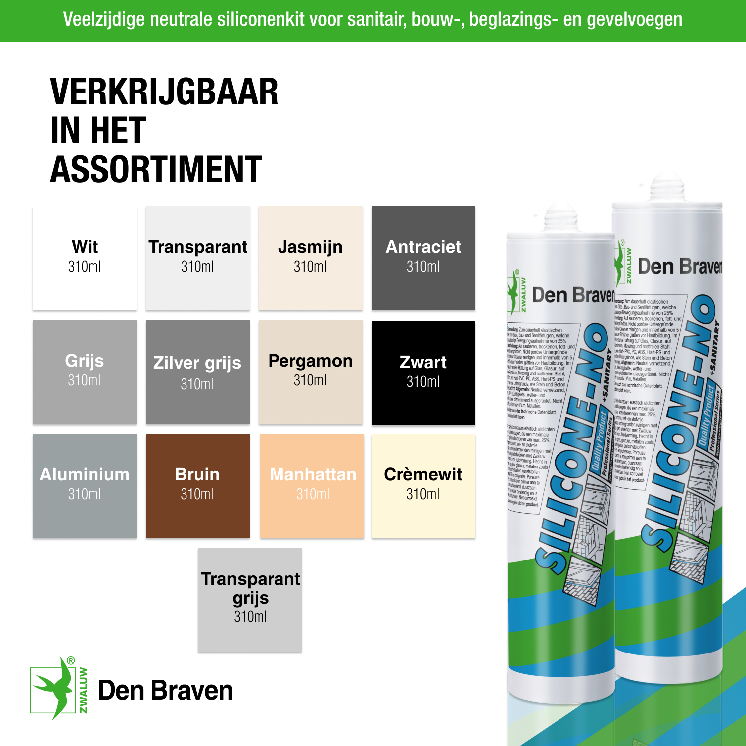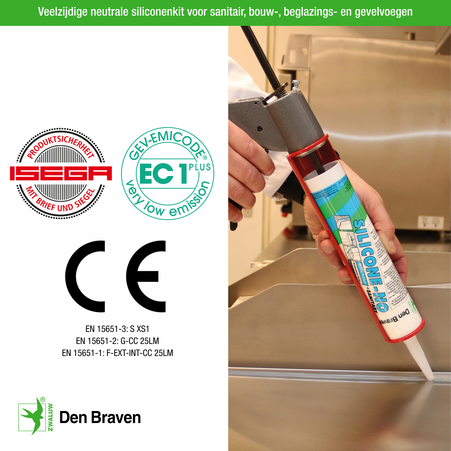 Zwaluw Silicone NO is een neutrale siliconenkit voor sanitair-, beglazings-, bouw- en gevelvoegen.